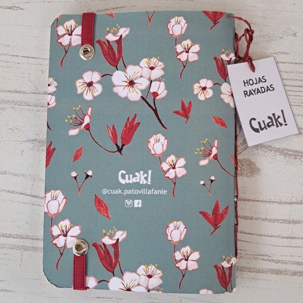 Libreta A6 Ciruela Verde hojas RAYADAS